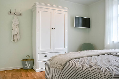 Süd/West Schlafzimmer mit Boxspringbett und zusätzlichem Smart-TV